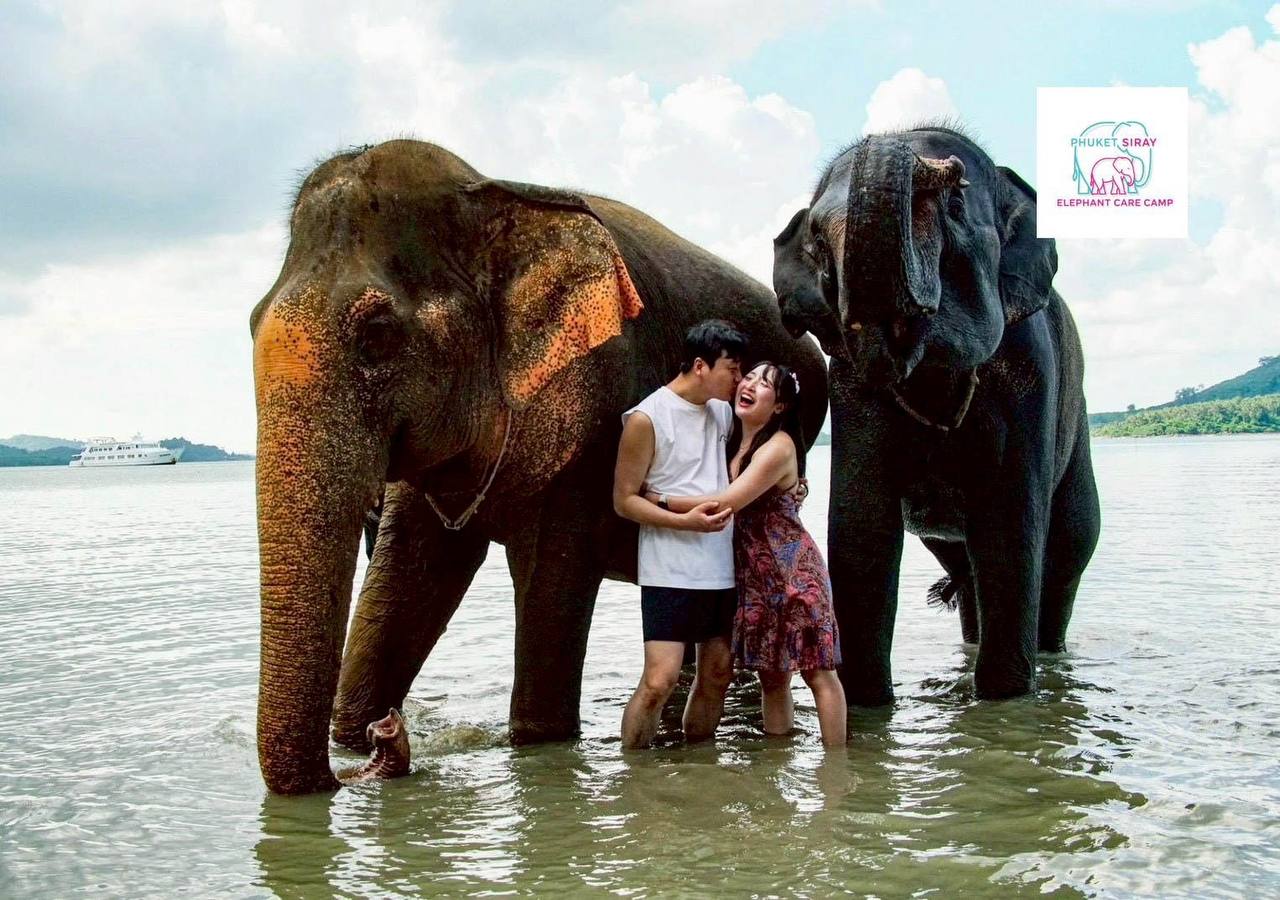Купание со слонами на пляже