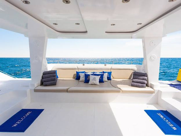 Катамаран оснащён двумя двигателями и развивает скорость до 12 узлов, обеспечивая плавный и устойчивый ход даже на открытой воде. На борту работает профессиональная команда из 3 человек, которая полностью сопровождает поездку и заботится о вашем комфорте.