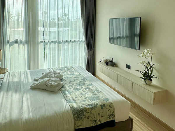 Апартаменты с одной спальней в комплексе Ozone на пляже Банг Тао доступны для помесячной аренды (возможность аренды на короткий срок от 14 суток - уточняйте у менеджера). Для запроса точной стоимости на Ваши даты заполните форму для связи с нашим менеджером.