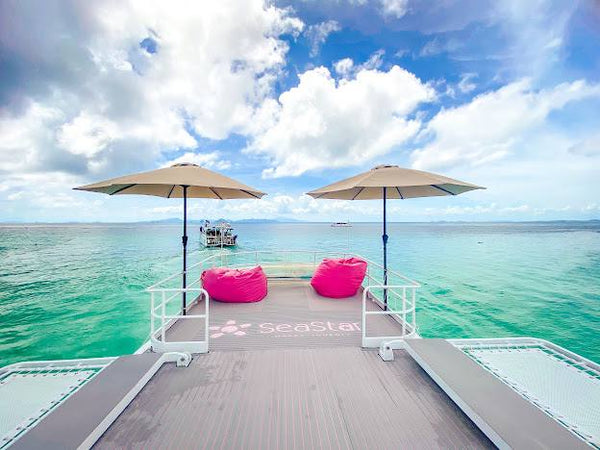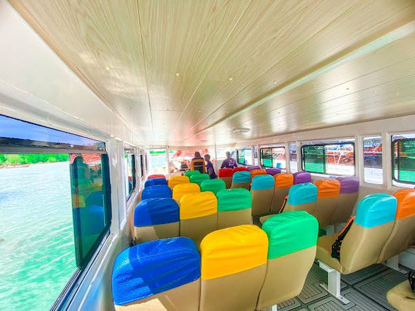 Путешествие проходит на комфортабельном двухпалубном катамаране, который обеспечивает плавный ход, просторные зоны отдыха и максимальный комфорт в пути. Такая лодка идеально подходит как для семейного отдыха, так и для тех, кто ценит удобство во время морских прогулок.